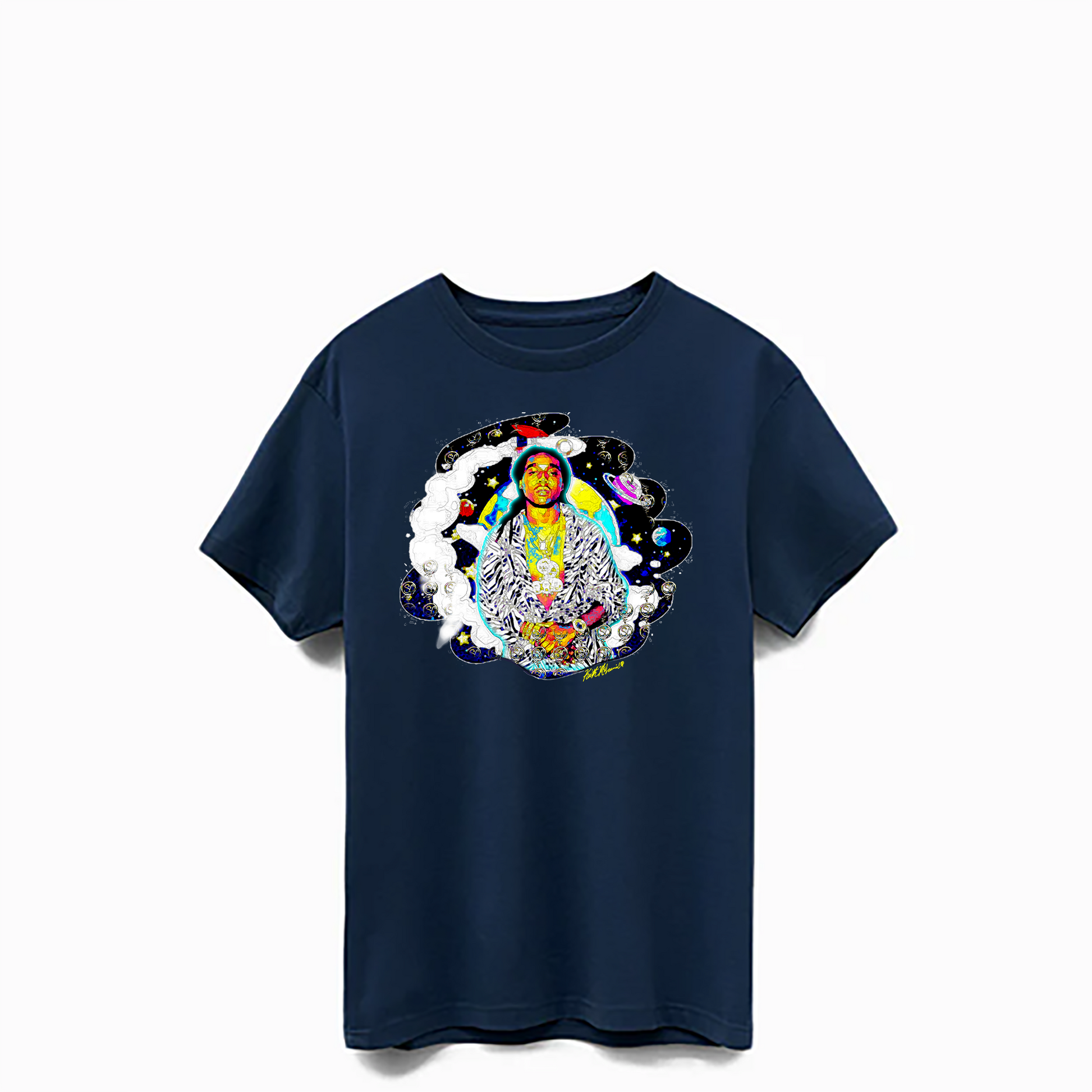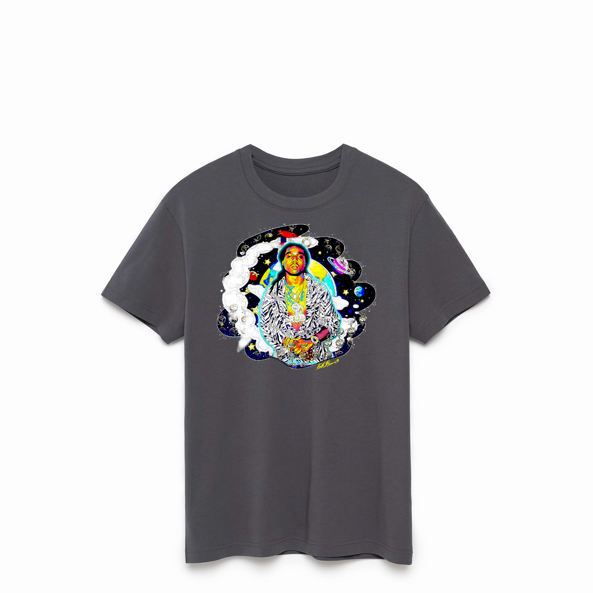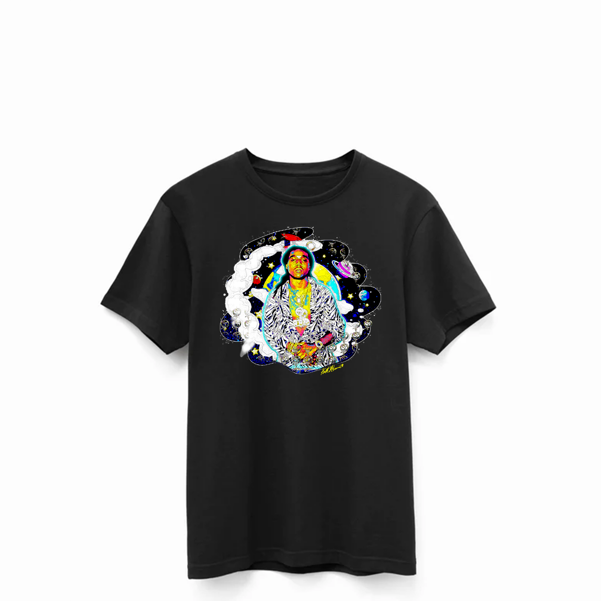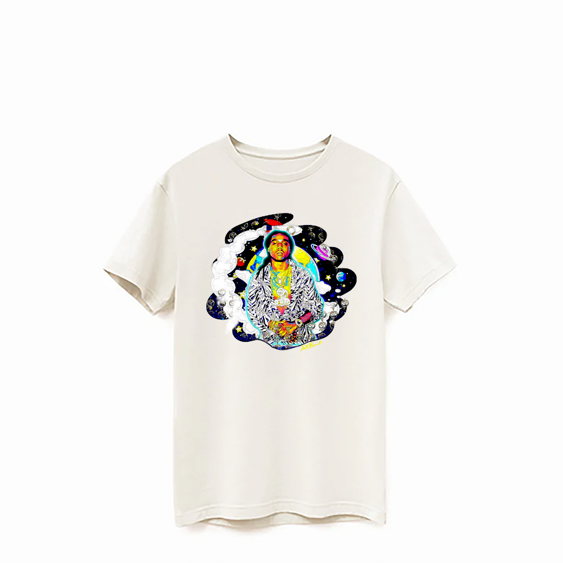 TakeOff - Swift Cream Factory Edition pays homage to the late great Takeoff, offering a unique and exclusive experience with custom artwork by Keith McLaurin. Crafted from 100% Supima Cotton, this piece is of the highest quality, promising superior durability and a luxurious, soft feel. Indulge in this elegant piece and join the late great Takeoff's legacy.